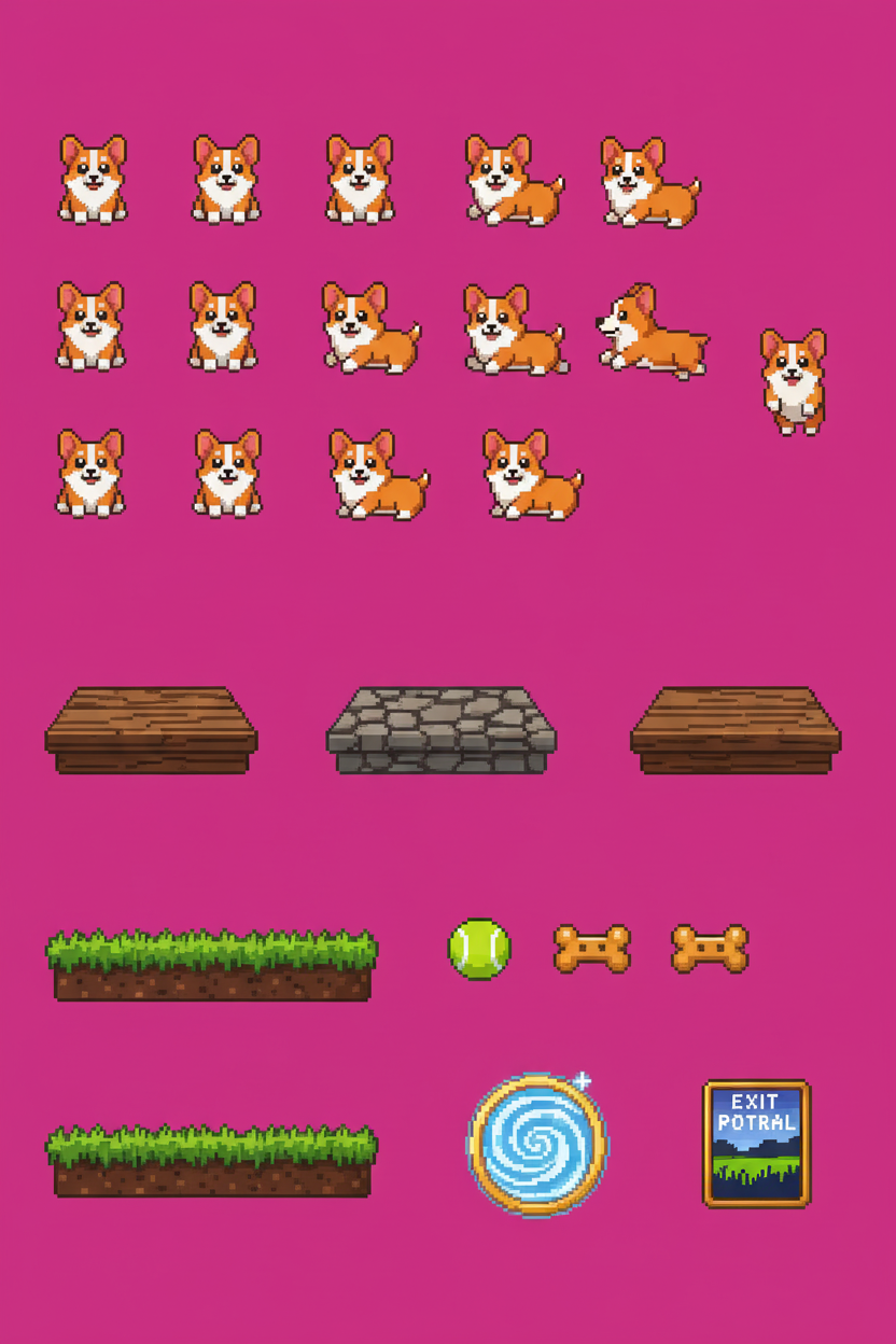 "emotionalNotes": "The game captures the feeling of a pet looking out at the world with curiosity and a hint of sadness. The player controls the corgi, navigating platforms to reach the portal, symbolizing the desire to explore beyond the familiar. The bittersweet tone reflects the transient nature of memories and the yearning for what lies beyond.",
