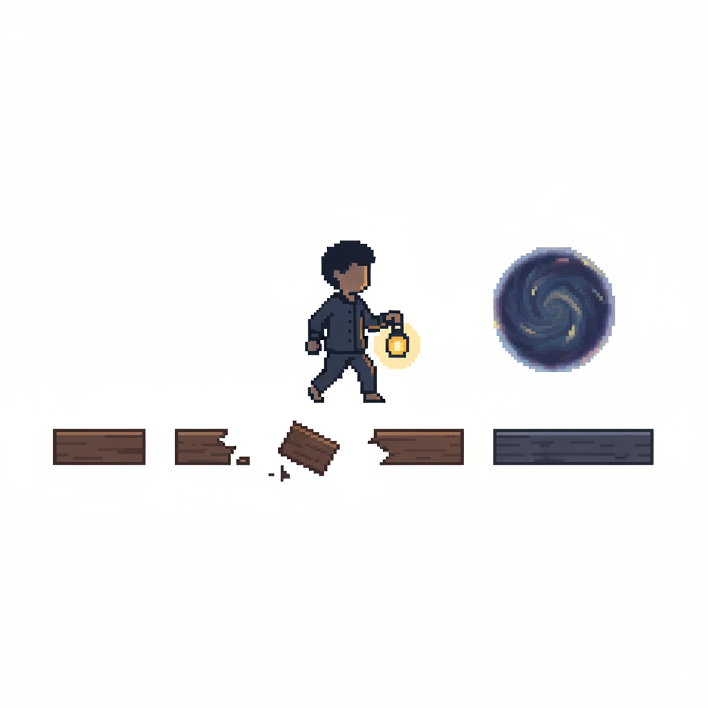 "path_choices": "The lower path is crowded but safe (grounded platforms), the upper path is precarious but offers a better view (moving platforms).",