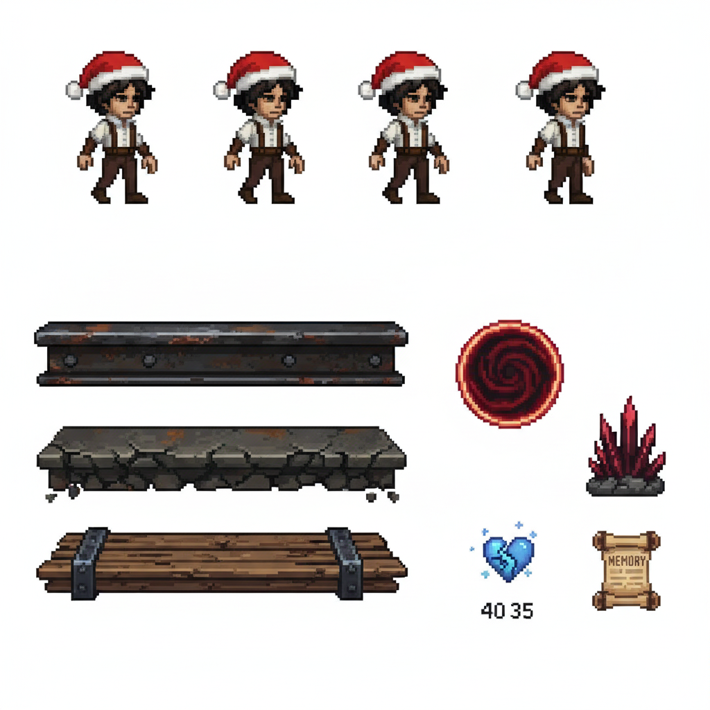 "journey_metaphor": "The platforming represents the fragmented memories and emotional obstacles in confronting the loss.",