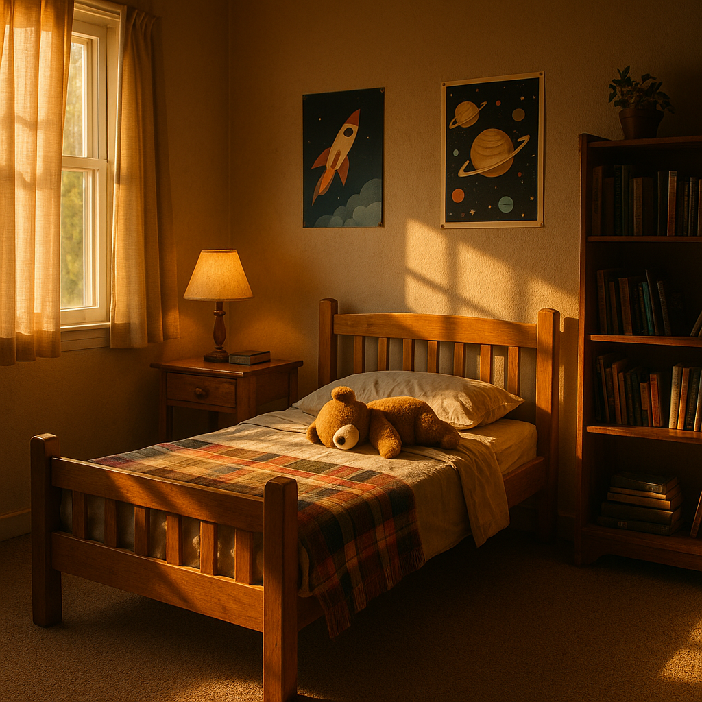 "story": "Sunlight filtering through the skylight. A memory of pure beauty.",