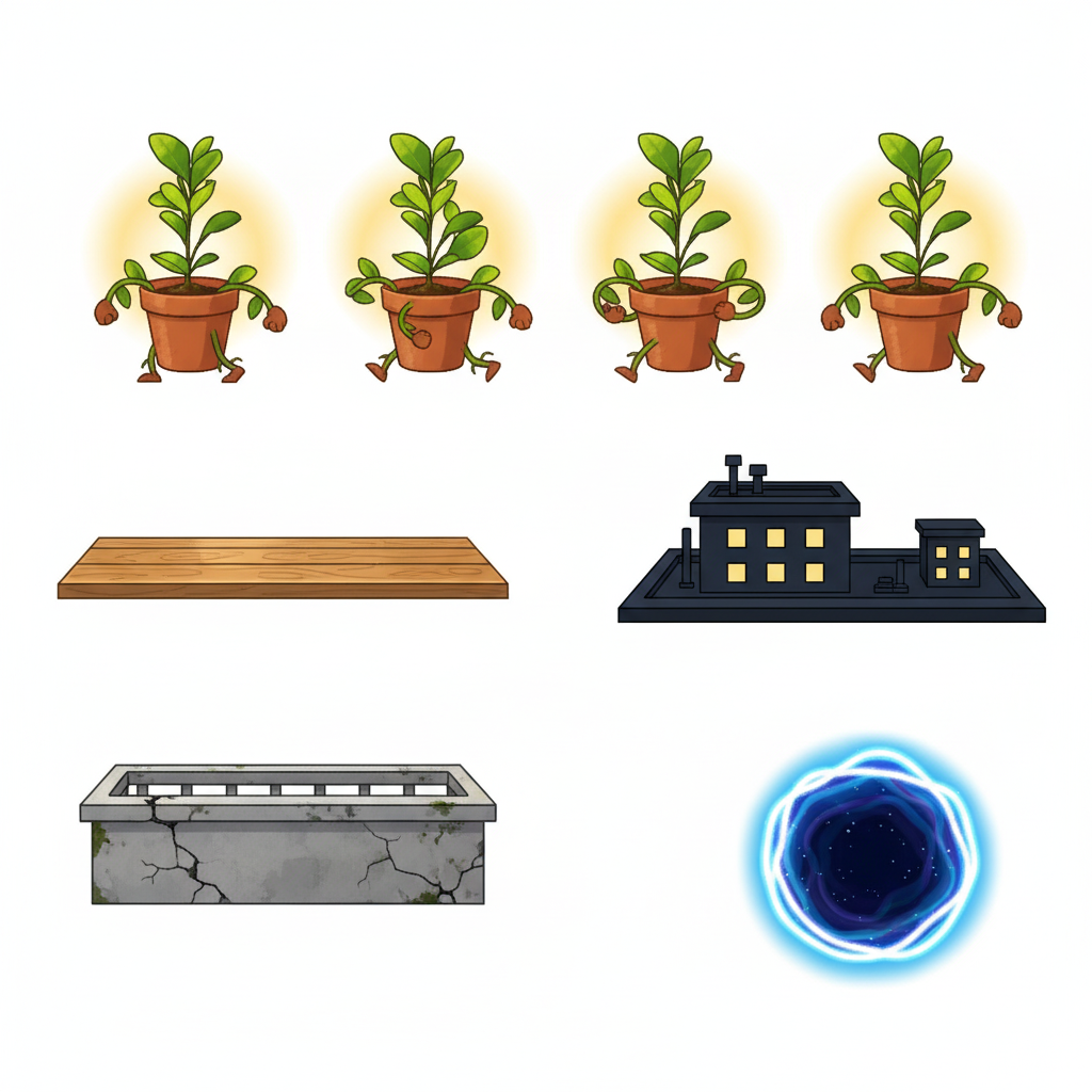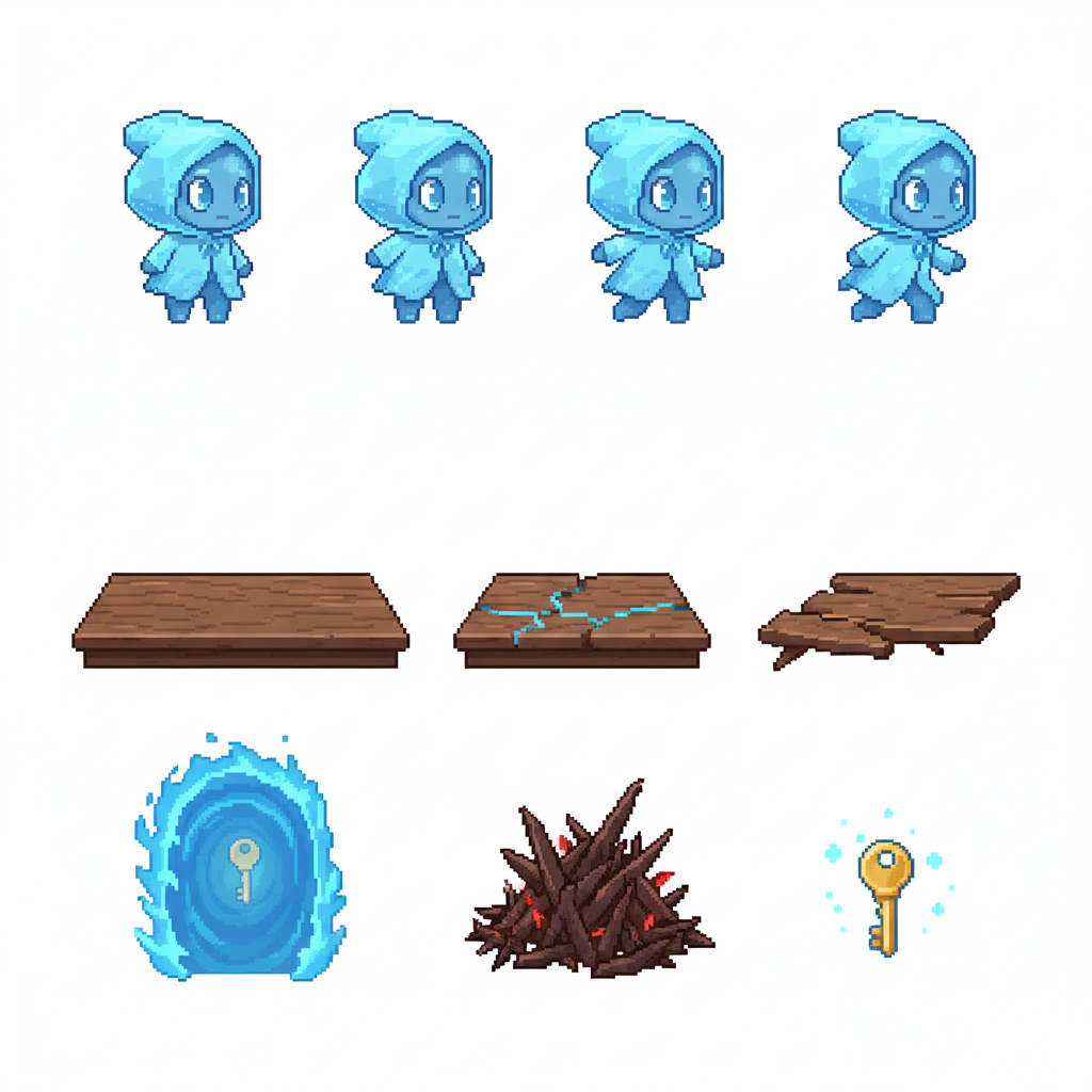 "path_choices": "The higher path offers a quicker route but requires precise jumps, representing the courage to embrace artistic challenges. The lower path is longer but easier, symbolizing a slower, more cautious journey of self-discovery.",